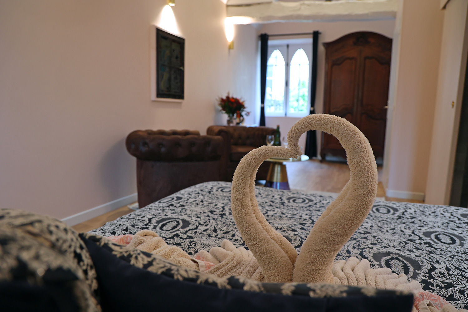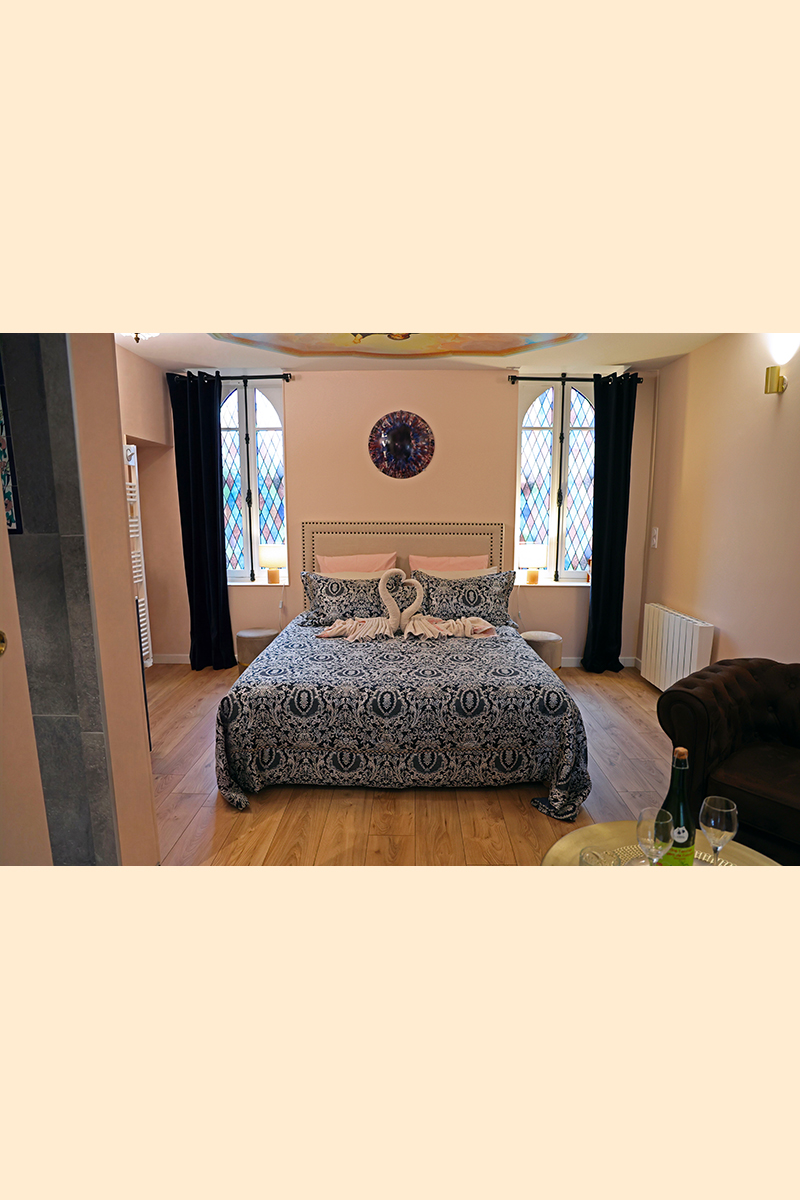 Suite de 27 m2 inspirée de l’histoire de Marie Antoinette, archiduchesse d’Autriche et Reine de France et de Navarre. Au 2e étage dans la partie 18e siècle, cette suite de caractère et de gout se défini par des tons pastels qui donnent un aspect romantique et glamour a la décoration. Elle dispose d’une salle d’eau […]