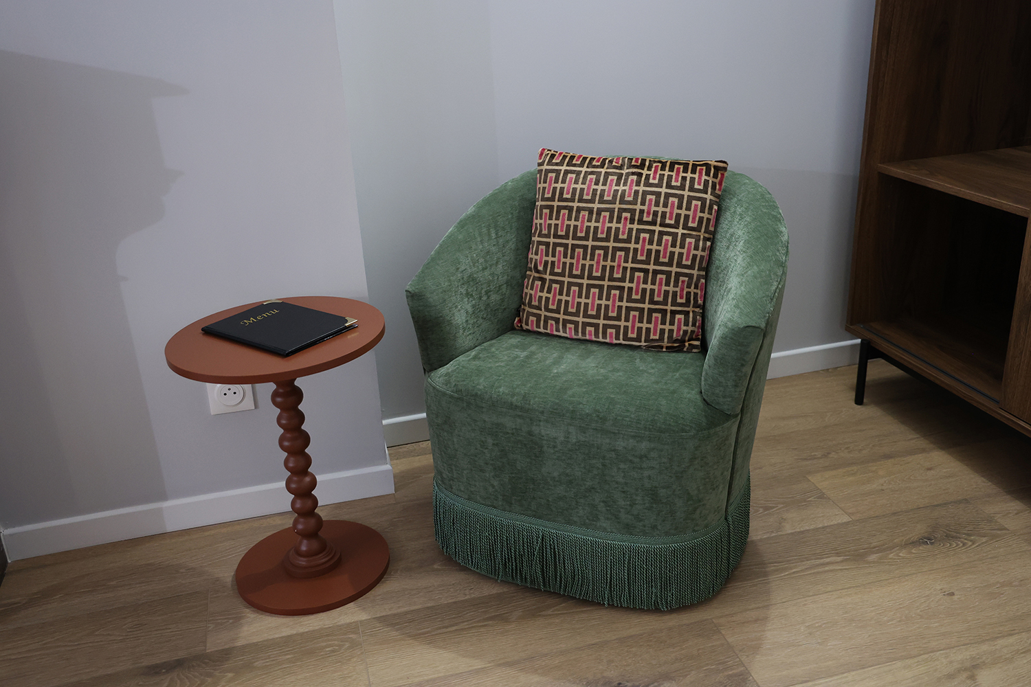 La suite Belissima ouvre les portes de son boudoir ou le charme d’antan flirte avec l’air du temps. Motifs floraux et géométriques, velours flamboyant et goût assumé pour l’opulence, elle cultive une sophistication intemporelle qui donne vie à une ambiance feutrée et raffinée.