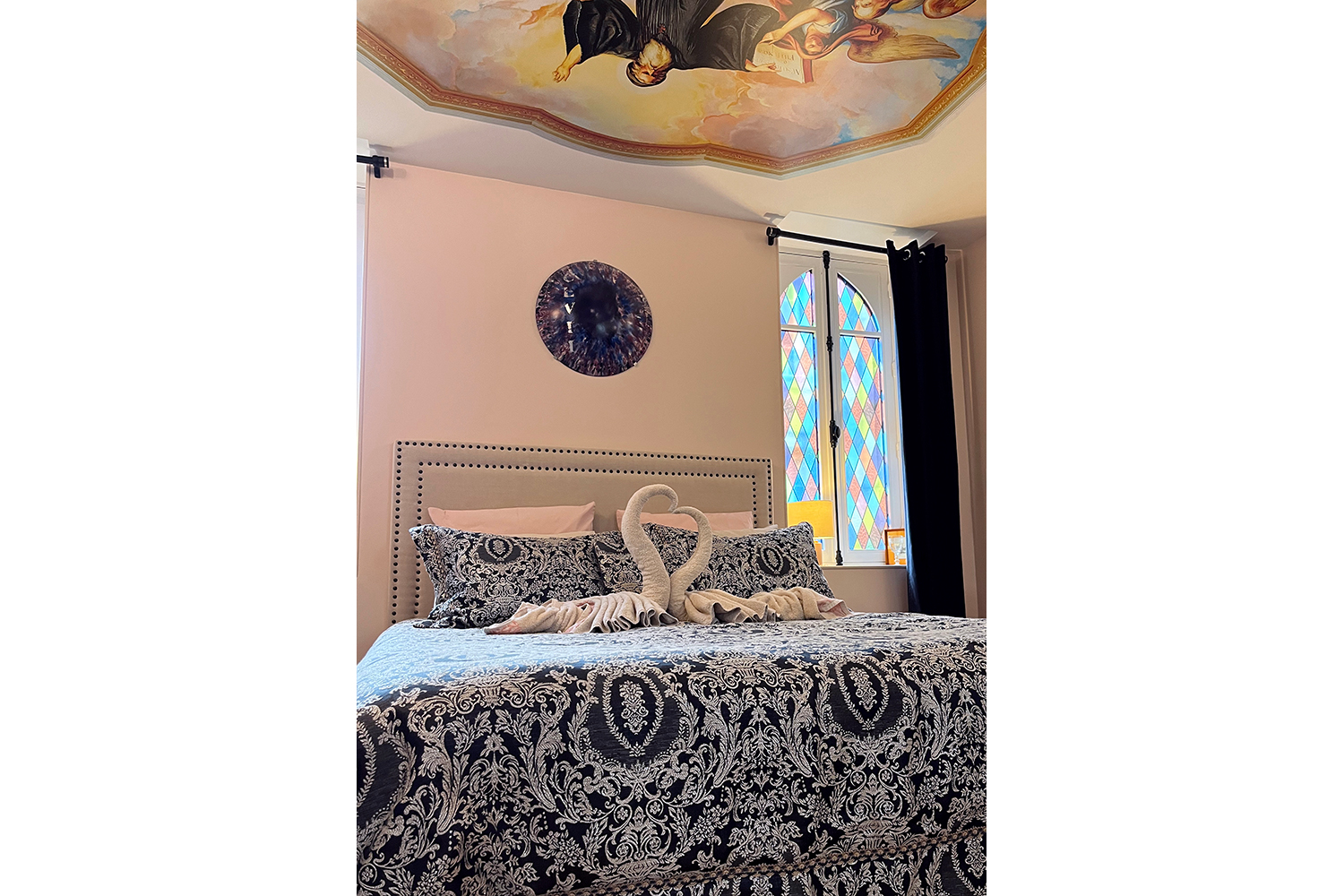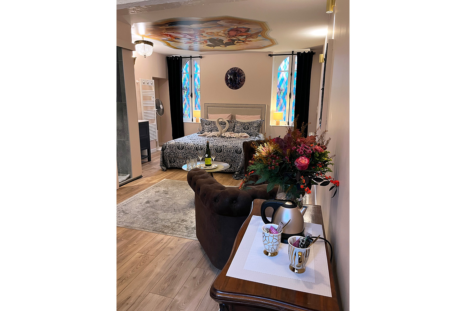 Unique en France et remplie d’histoire, la Chapelle à la décoration soignée mélange l’ancien et le moderne avec ses peintures et objets de déco d’époque.