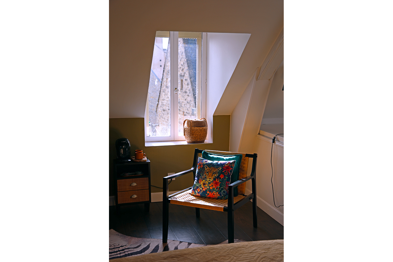 Suite de 29 m2 à l’esprit déco urbain jungle, La Jungle est située au dernier étage de la bâtisse dans la partie 18ème siècle.